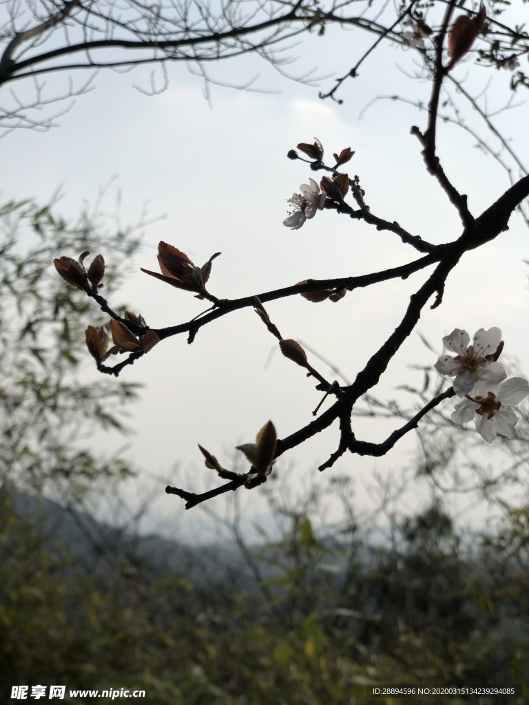 櫻花 藍(lán)天 山圖片