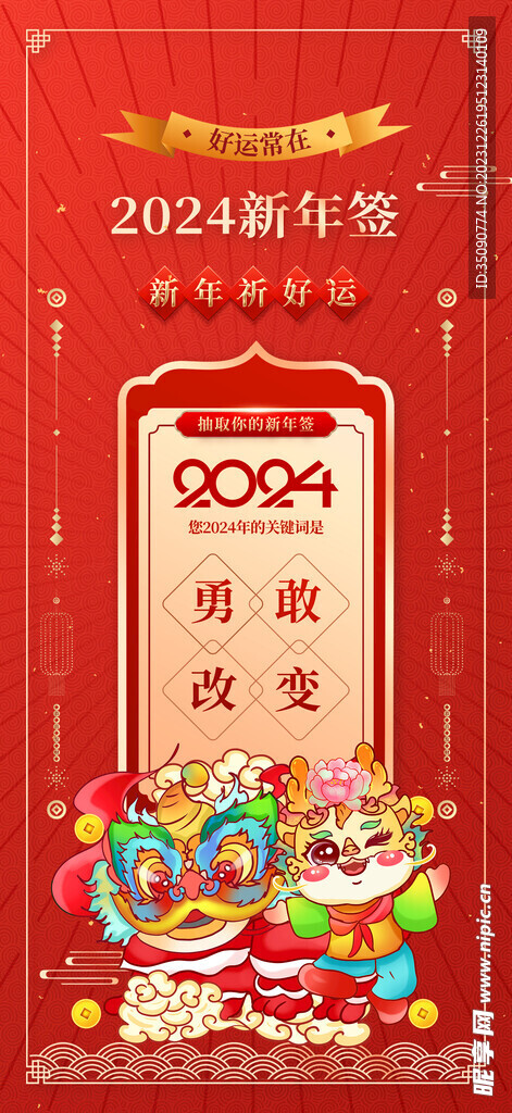 龍年素材新年春節(jié)2024年畫圖片