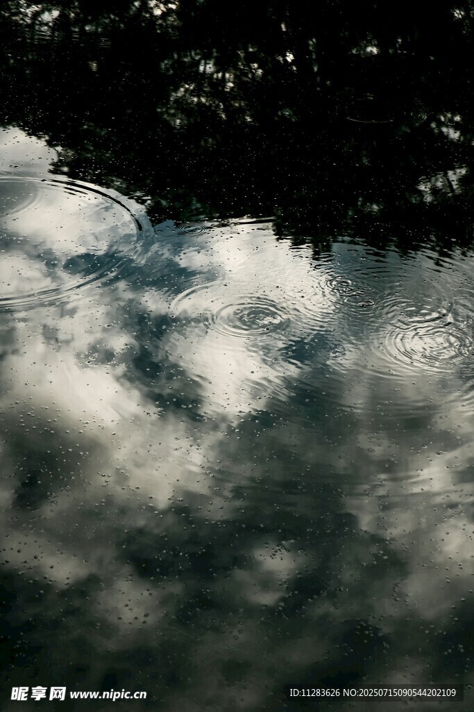 水面倒映的天空云朵圖片