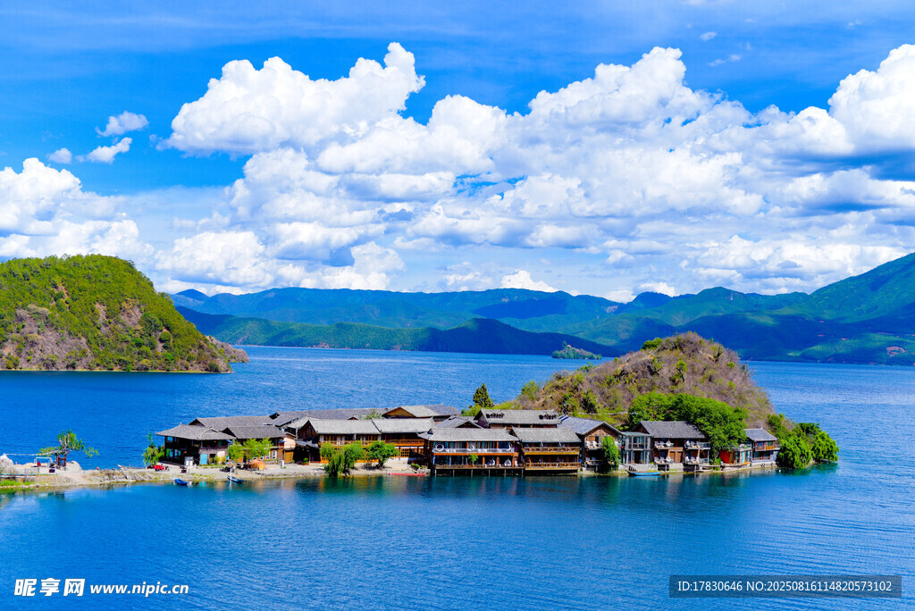 美麗瀘沽湖中的湖心島圖片