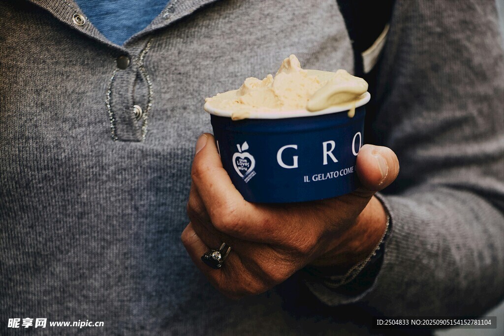手持藍(lán)色杯裝美食圖片