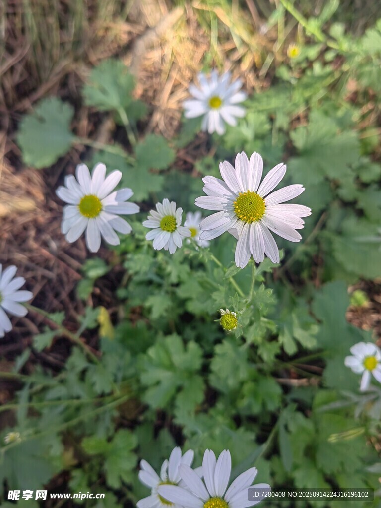 陽光下的小白菊綻放圖片
