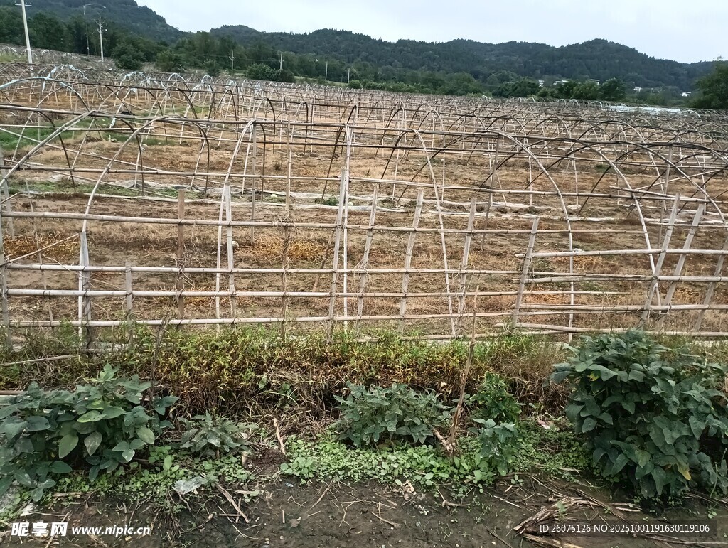 田園竹架菜園景觀圖片
