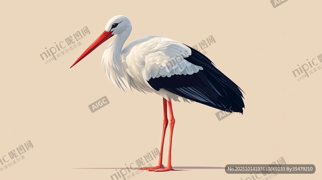 站立的白鸛插畫圖片