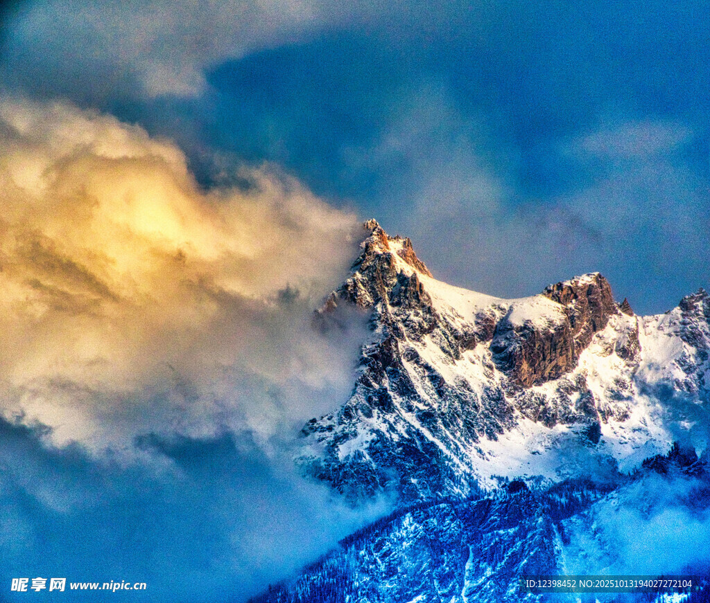 壯麗雪山映于絢爛云海圖片
